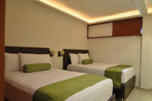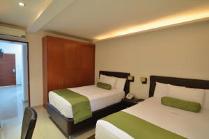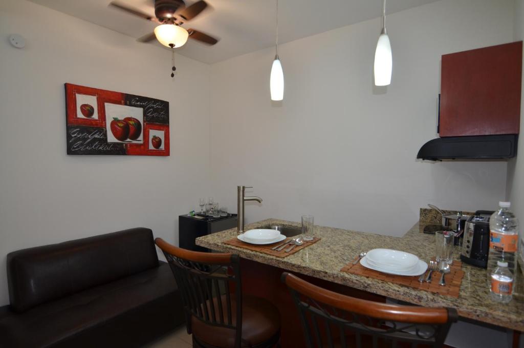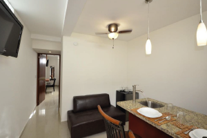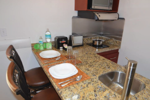 Our Double / Double guest suite features balcony, all-leather furniture, divided living and sleeping areas, two Double size Control Comfort beds with Memory Foam pillow top, two 32" flat-panel high-definition television with International cable channels, kitchenette with granite countertops, induction stove, high bar leather stools, refrigerator and microwave. Enjoy complimentary hotel-wide Wi-Fi and the Hydro Showers in each suite.