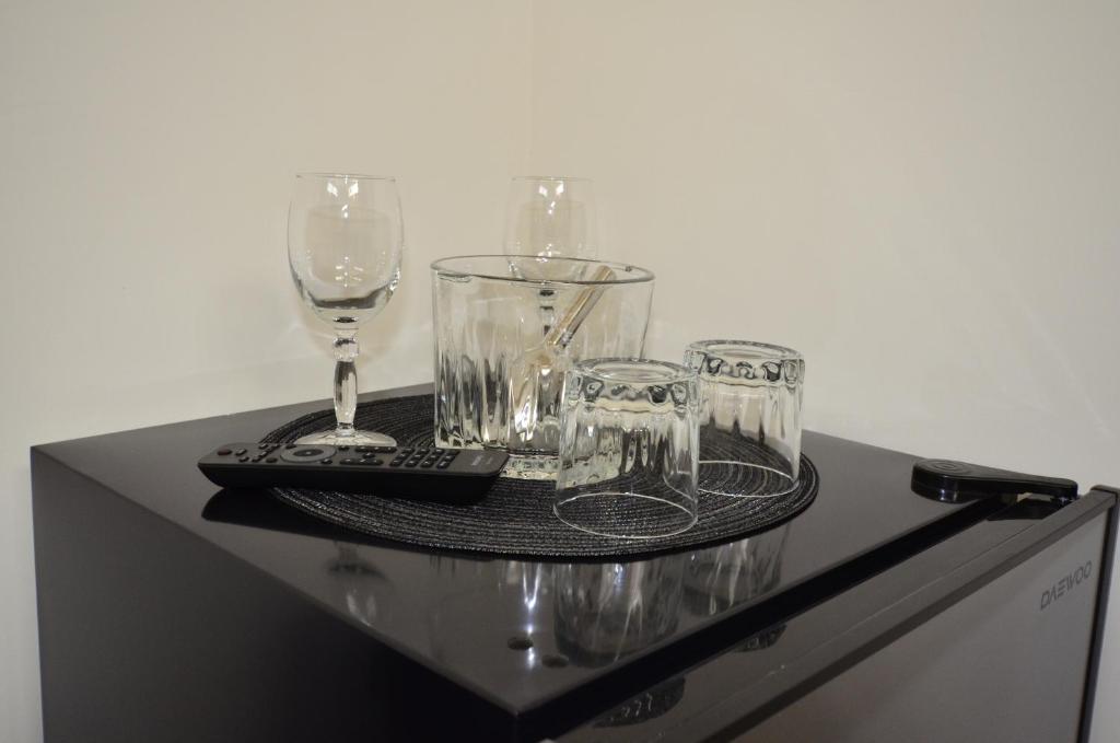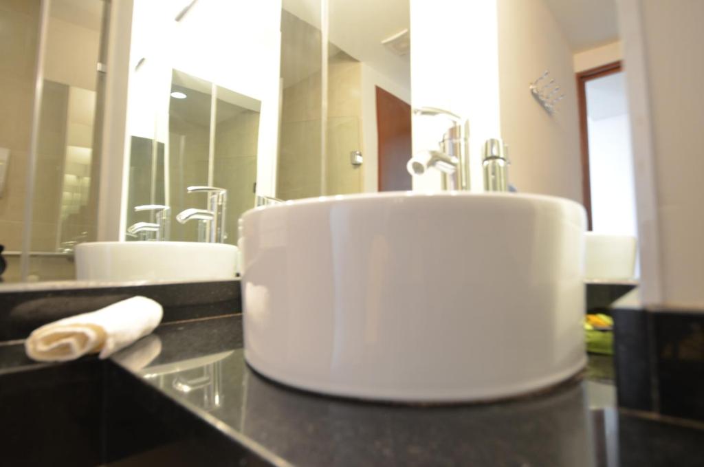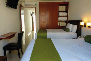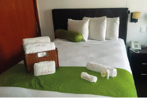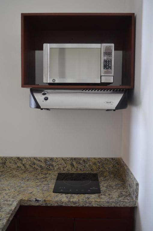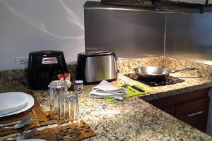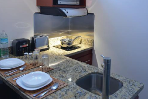 Our Double / Double guest suite features all-leather furniture, divided living and sleeping areas, two Double size Control Comfort beds with Memory Foam pillow top, two 32" flat-panel high-definition television with International cable channels, kitchenette with granite countertops, induction stove, high bar leather stools, refrigerator and microwave. Enjoy complimentary hotel-wide Wi-Fi and the Hydro Showers in each suite.