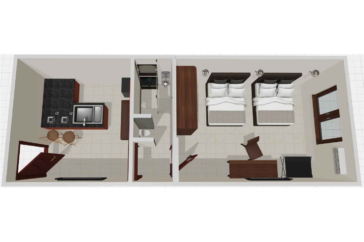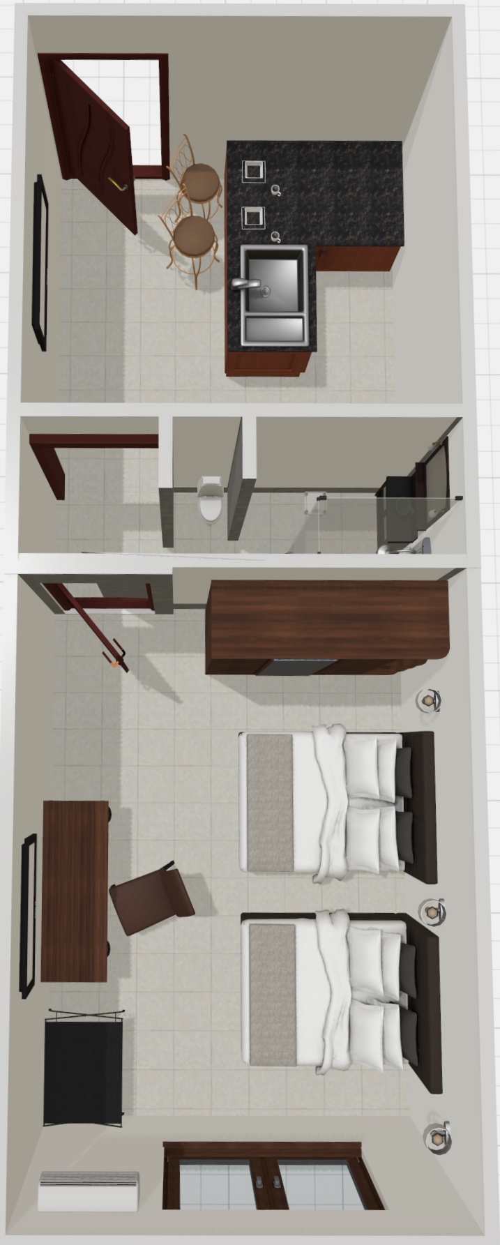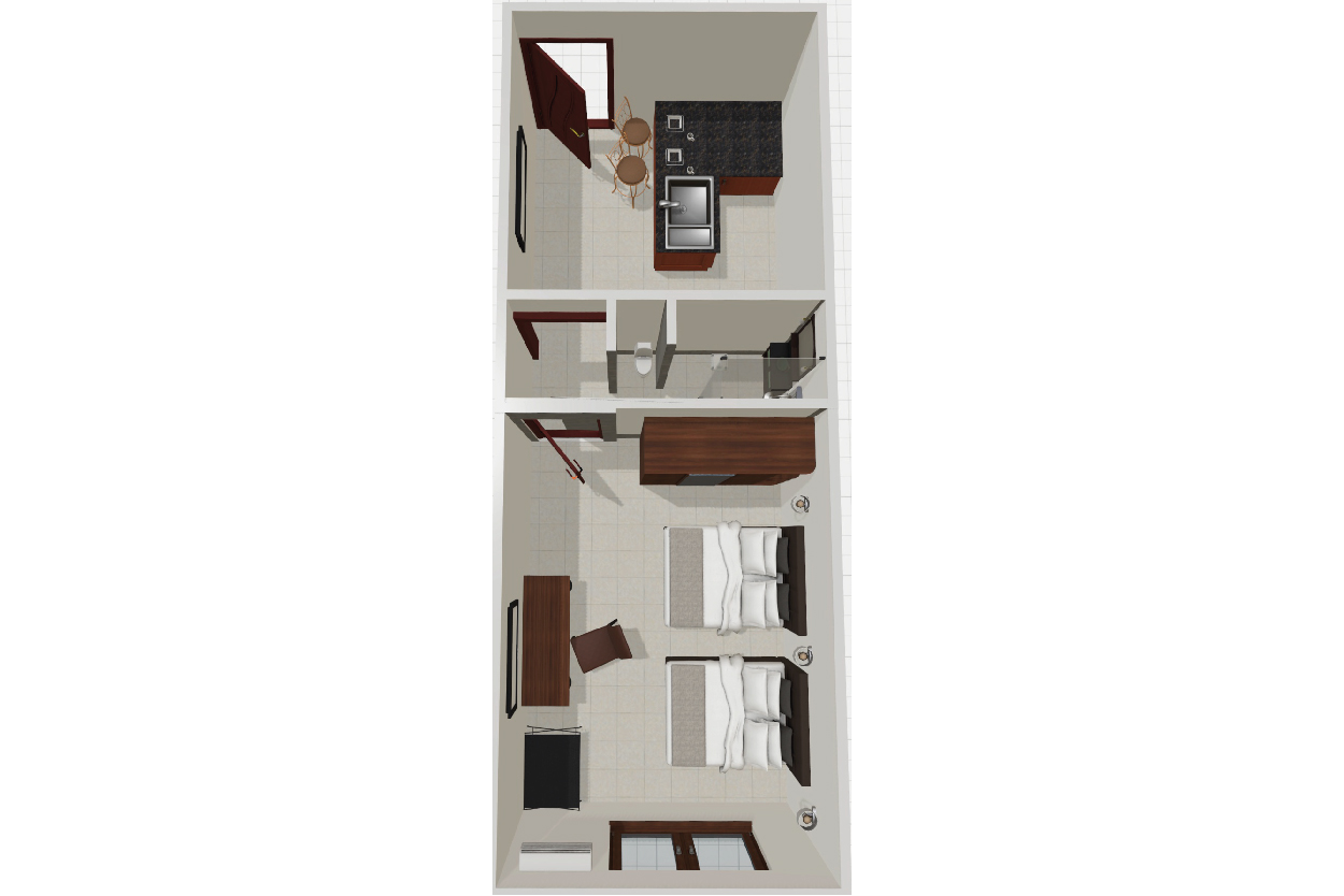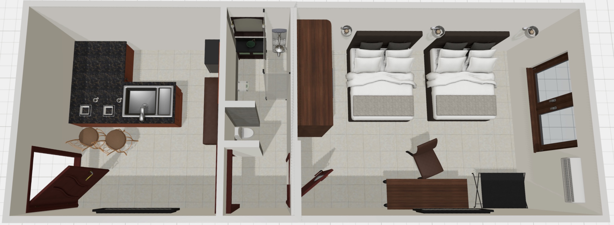 Our Double / Queen guest suite features black-outs, all-leather furniture, divided living and sleeping areas, one Double size and one Queen size Control Comfort bed with Memory Foam pillow top, two 32" ...